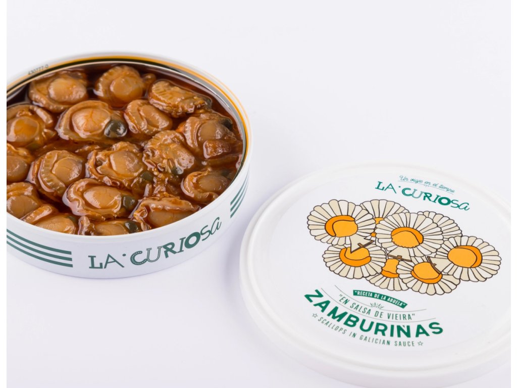 Omáčka, ve které jsou hřebenatky naloženy, vychází z tradiční galicijské receptury – je připravena z rajčat, cibule, olivového oleje, vína, uzené papriky a špetky péče, která se promítá do každého sousta.