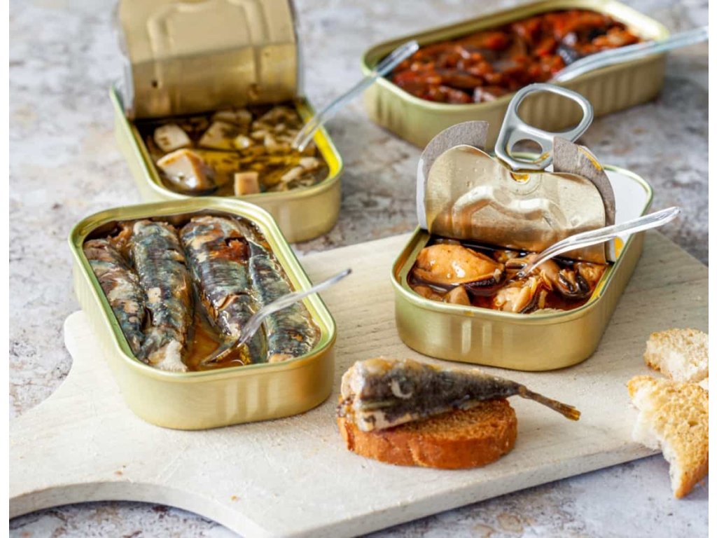 - Pitchounettes – drobné sardinky (až 70 %) v extra panenském olivovém oleji, jednoduše dokonalé